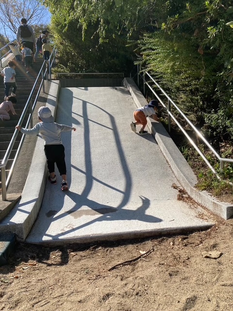 秋には、10月頃の日曜午後に、みんなで屋外で遊ぶ秋プログラムを行っています。行先や内容は年ごとに教師会で相談ですが、写真は、車に乗り合わせてむろいけ園地に行ったときのものです。気持ち良い季節に、神様がお創りになった自然を一緒に楽しみます🎵