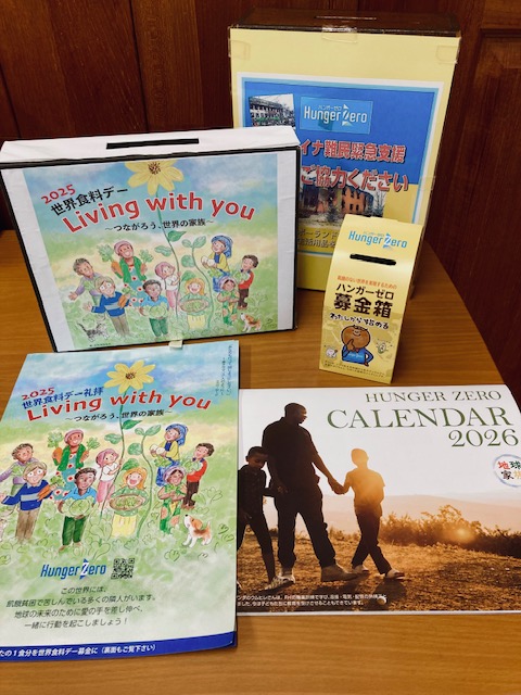 私たちは、日本国際飢餓対策機構の活動に長年協力しており、毎年世界食糧デーに合わせて、CSでも学びや募金の機会を設けています。「わたしから始める、世界が変わる」まず自分が「知る」ということに大きな意味があることを改めて伝え、小さな自分たちにもできることを一緒に考え、祈ります。