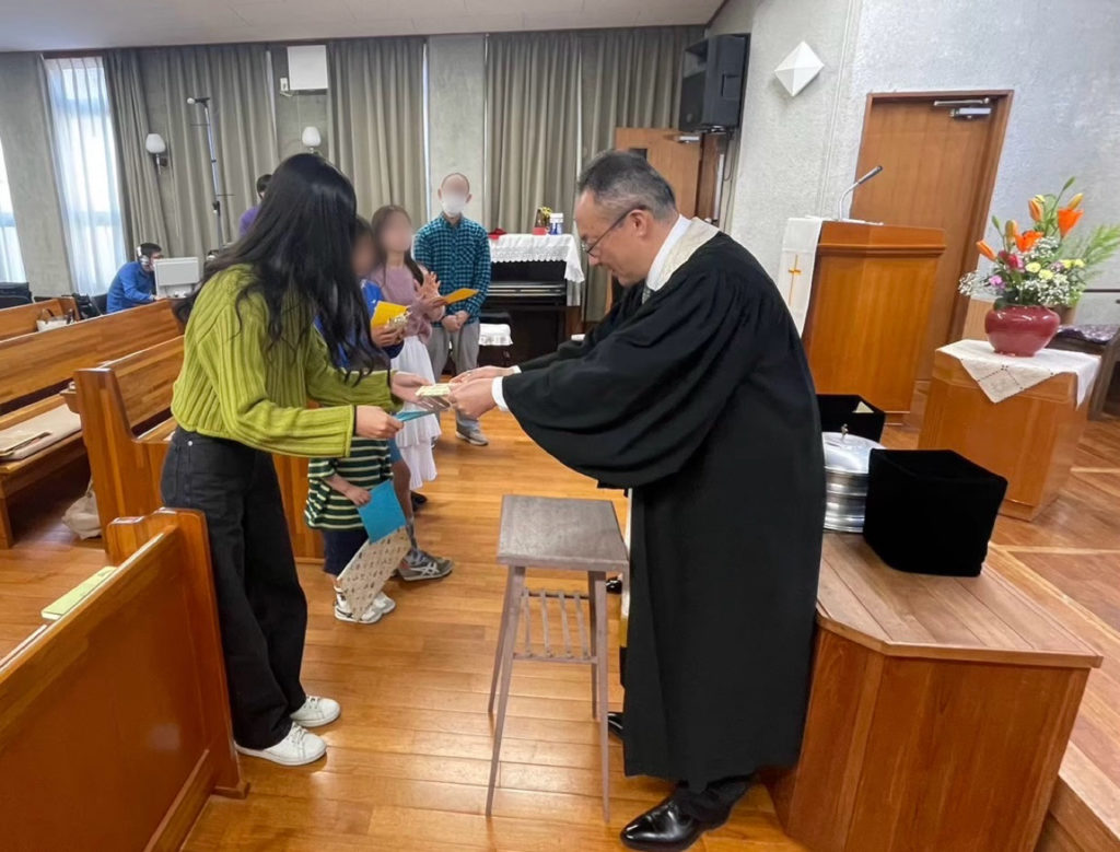 教会学校の一年は、進級式からスタート!前年度一年間よくがんばった子どもたちへ、基一校長先生からの表彰タイム。礼拝堂で一人ずつ、賞状やプレゼントが手渡されます。新しい分級クラス、新しい先生、新しい生徒証✨これから始まる新しい一年間へと気持ちも新たに、みんないいお顔です🌸