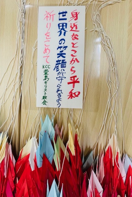 8月には、朝の分級にも平和をテーマに学びます。折り鶴など、具体的なものを見ながら一緒に考えたり、戦争・平和がテーマになった絵本の読み聞かせをしたり。なんでもオープンに話し、子どもたちの内から、自分なりの言葉で平和への祈りが生まれてくるようにと願っています。