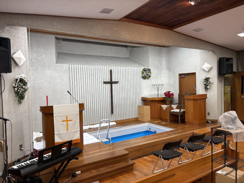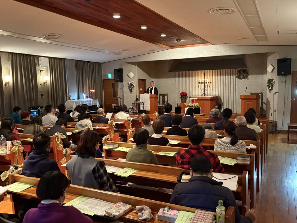 礼拝後は、クリスマス愛餐会🎁赤ちゃんからご年配の方々まで、世代を超えて和気あいあいとおいしいランチをいただきました。お楽しみプログラムとしてゲームも二つ。子ども特別ゲーム「世界のコイン当てクイズ」、「りんご皮むき大会(皮の長さ勝負)」を行ない、どちらも白熱した戦いが繰り広げられました🔥また、この日は感謝なことに洗礼式があり、3名の方が受洗されました。神様からの恵みいっぱいの一日となりました。⭐